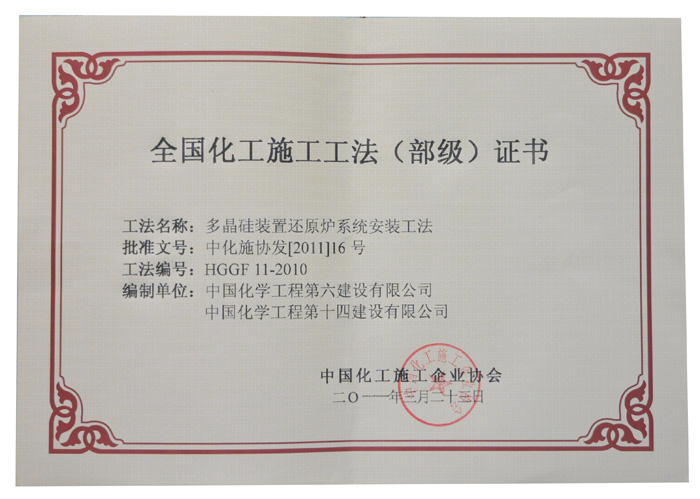 多晶硅裝置還原爐系統安裝工法(部級)-中國化學(xué)工程第十四建設有限公司