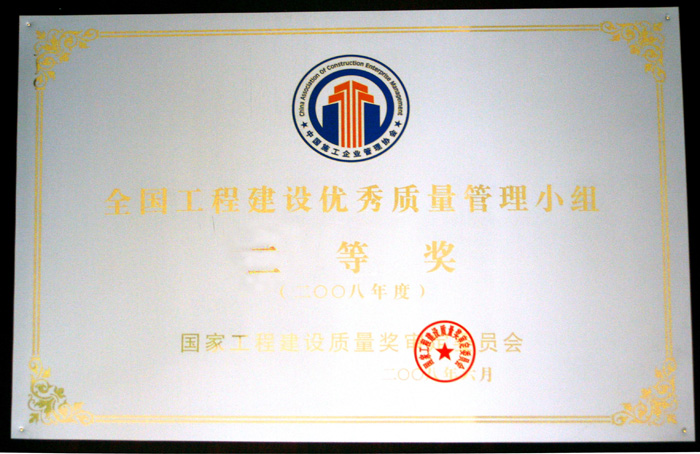 全國工程建設優(yōu)秀質(zhì)量管理小組二等獎(2008年度)-中國化學(xué)工程第十四建設有限公司