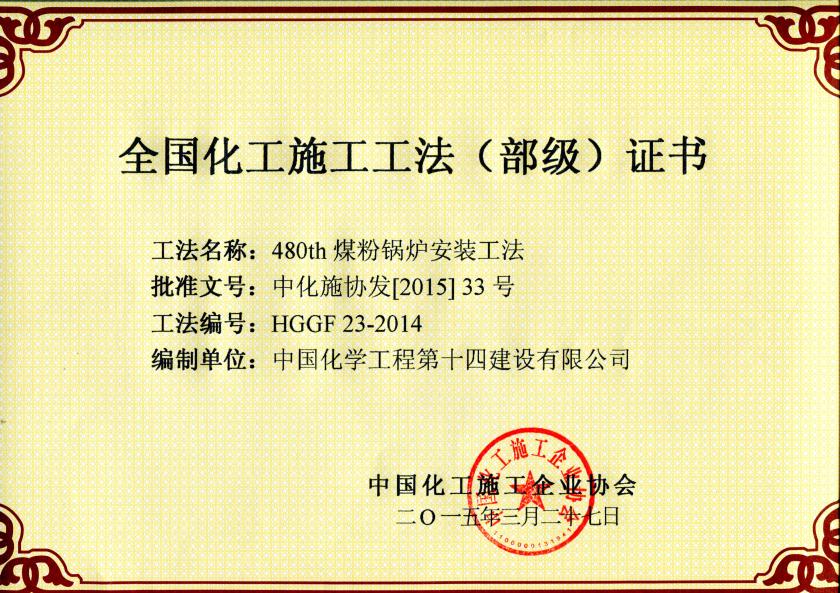 480th煤粉鍋爐安裝工法(部級)-中國化學(xué)工程第十四建設有限公司