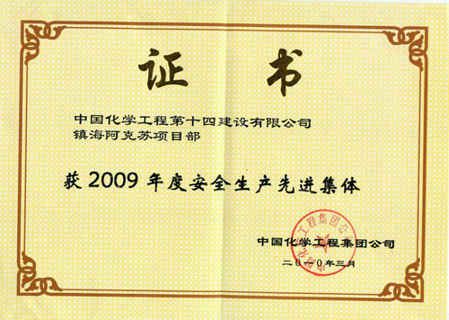 安全生產(chǎn)先進(jìn)集體-中國化學(xué)工程第十四建設有限公司