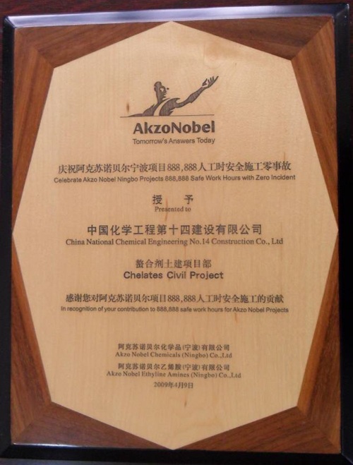888,888安全工時(shí)獎-中國化學(xué)工程第十四建設有限公司