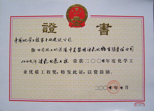化學(xué)工業(yè)優(yōu)質(zhì)工程獎(洛陽(yáng)中昊黎明過(guò)氧化氫項目)-中國化學(xué)工程第十四建設有限公司