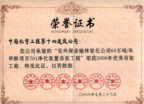 全國優(yōu)秀吊裝工程-中國化學(xué)工程第十四建設有限公司