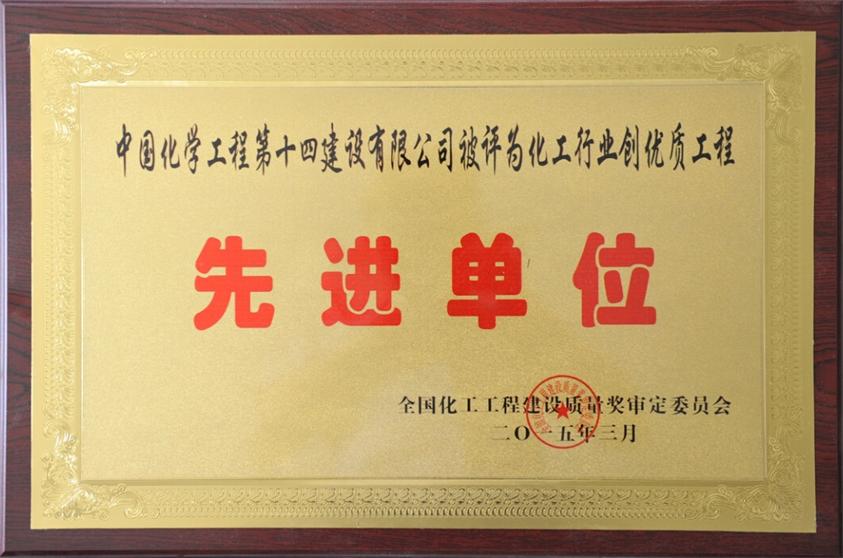 化工行業(yè)創(chuàng )優(yōu)質(zhì)工程先進(jìn)單位-中國化學(xué)工程第十四建設有限公司
