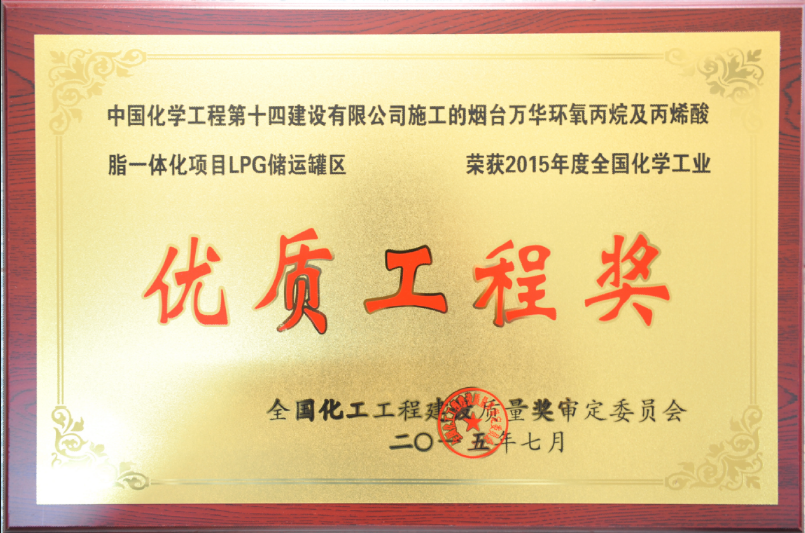 化學(xué)優(yōu)質(zhì)工程獎--煙臺萬(wàn)華環(huán)氧丙烷及丙烯酸脂一體化項目LPG儲運罐區-中國化學(xué)工程第十四建設有限公司