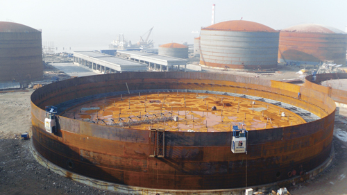 浙江建橋能源發(fā)展有限公司寧波-舟山港西蟹峙29萬(wàn)m3石油儲運工程50000m3儲罐施工場(chǎng)景-中國化學(xué)工程第十四建設有限公司
